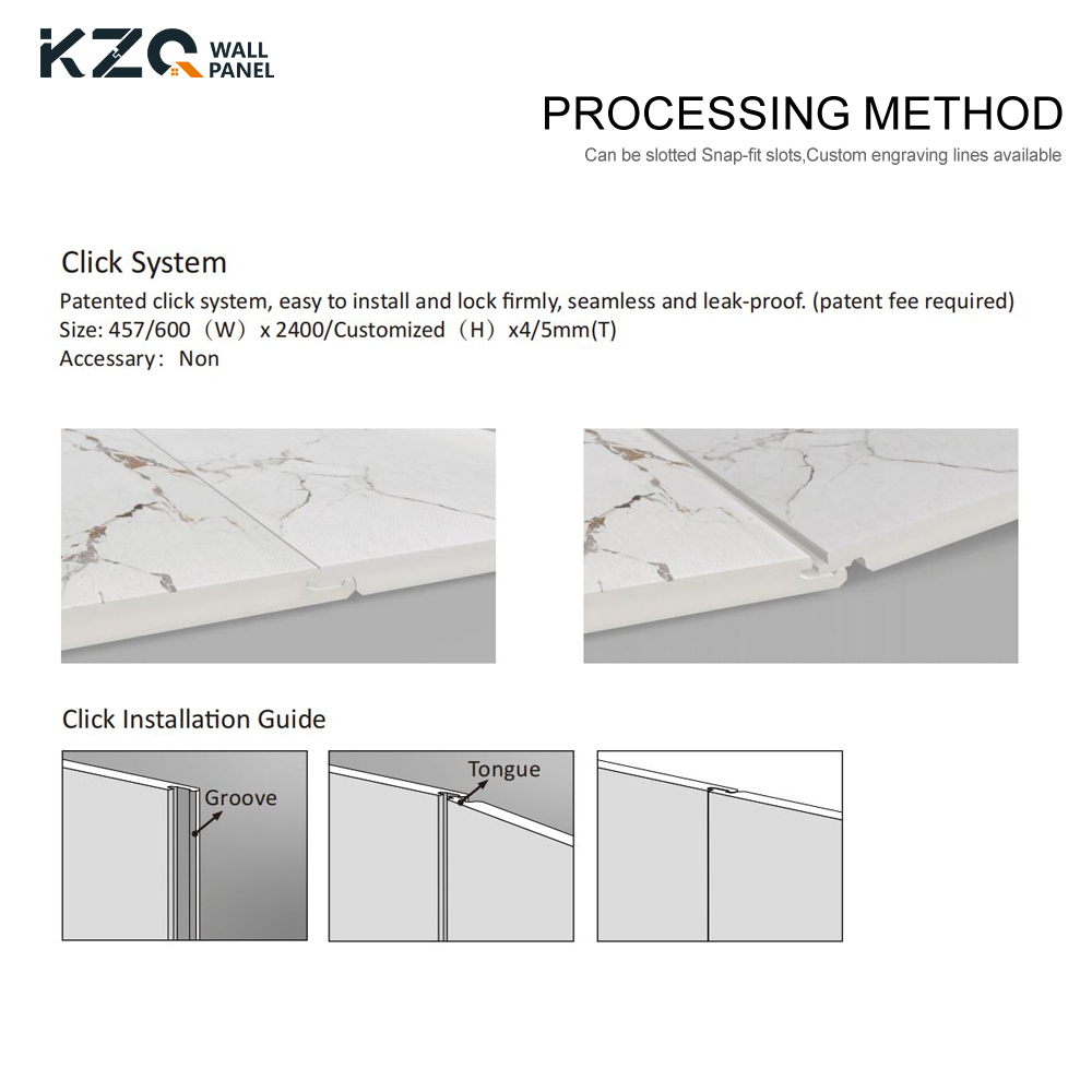 O painel de parede SPC está disponível em espessura de 4 mm e 5 mm, tornando-o adequado para diferentes necessidades de instalação.O design clique pedra do SPC telha de painel de parede é conveniente para instalação DIY na parede, e também pode ser usado como piso.